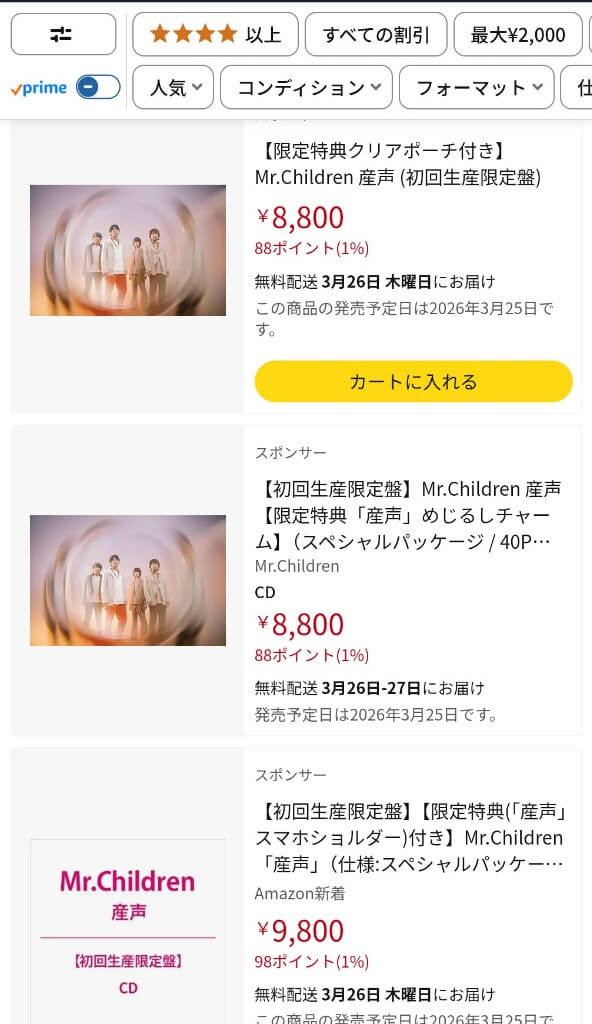 1: 2025/12/19(金) 19:14:58.47 ID:ed1mxzLz9Mr.Childrenのニューアルバム「産声」が3月25日にリリースされることが決定した。「産声」は2023年10月発売の「miss you」以来、2年5カ月...